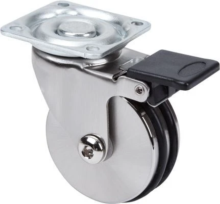 Material: Stahlblech.Ausführung: vernickelt. Befestigungsarten: Schwenk-Platte.Vernickeltes Aluminium (Edelstahl-Effekt) mit doppeltem Laufbelag aus Polyurethan.Verfügbar mit Feststeller.