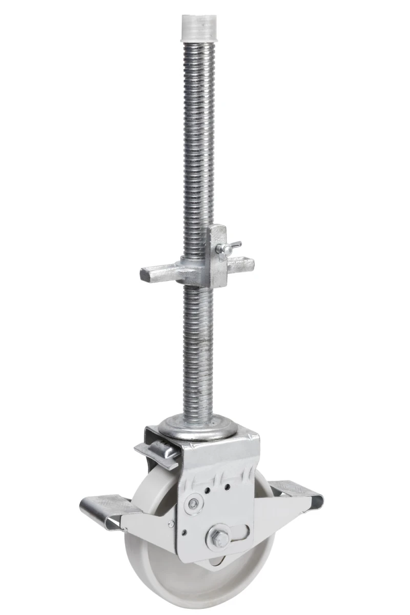 Mit regulierbarer Stiftschraube bis zu einer Höhe von 500 mm. Anwendung: Industriebranche, Instandhaltung von Fabriken, Metallindustrie, öffentliche Versorgungsbetriebe, Eisenbahn-, Luftfahrt- und Baubranche, Baugerüste, mobile Sitzreihen, mobile Kräne, Hebebühnen.