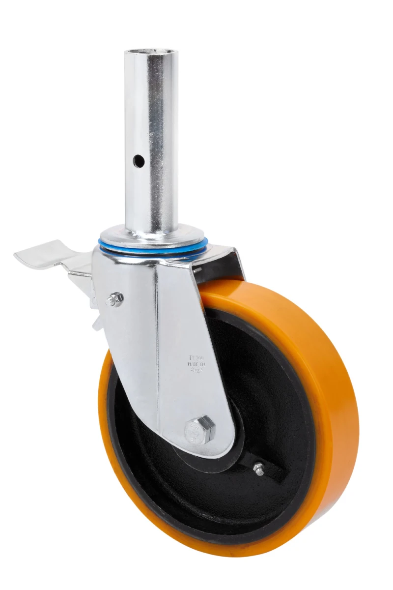 Räder mit Stahlkern und Reifen aus geschmolzenem Polyurethan mit einer Härte von 95º shore A. Geeignet für Ladungen bis zu 700 kg.