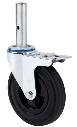 Räder mit Polyamidkern und Reifen aus natürlichem schwarzem Gummi. Geeignet für Ladungen bis zu 215 kg.