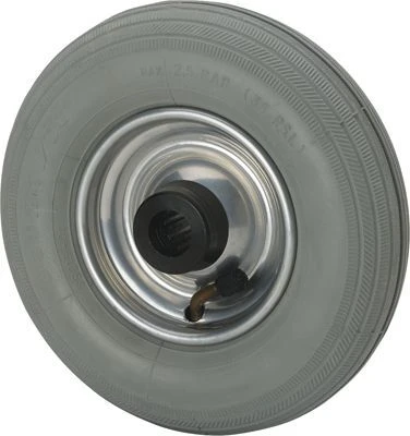 Durchmesser der Räder: 200 - 260 mm. Rollenlager und Kugellager. Polypropylen und Stahlblech-Felge. Luftbereifung, graue und schwarz. Ply-rating: 4 und 6.