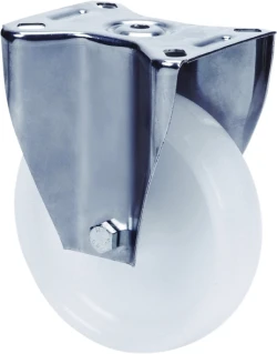Räder aus Polypropylen, alle Komponente sind aus rostfreiem Stahl (AISI 304). Geeignet für Ladungen bis zu 120 kg.