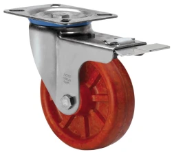 Räder aus extra starkem Harz, besonders geeignet für hohe Temperaturen und Ladungen bis zu 600 kg. Alle Bestandteile sind aus rostfreiem Stahl (AISI 304).
