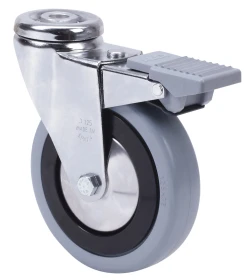 Räder mit Polyamidkern und Reifen aus grauem Gummi. Geeignet für Ladungen bis zu 100 kg.