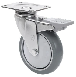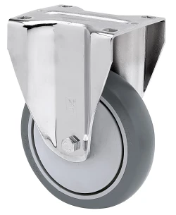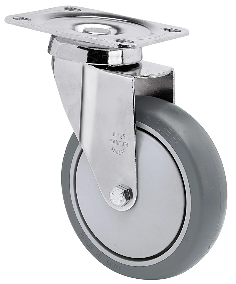 Räder mit Polyamidkern und Reifen aus thermoplastischem grauem Gummi. Geeignet für Ladungen bis zu 100 kg.