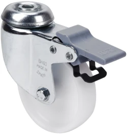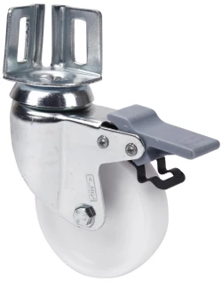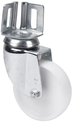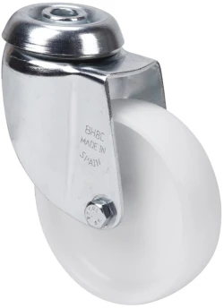 Räder aus weissem Polypropylen. Geeignet für Ladungen bis zu 125 kg.