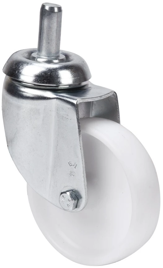Räder aus weissem Polypropylen. Geeignet für Ladungen bis zu 125 kg.