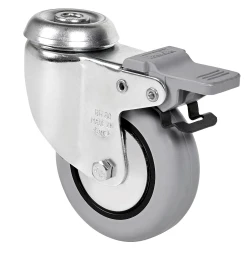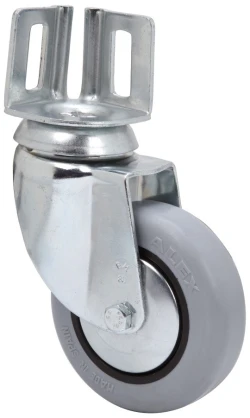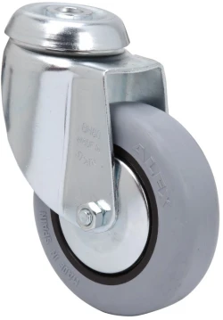 Räder aus grauem gespritztem Gummi. Geeignet für Ladungen bis zu 70 kg.