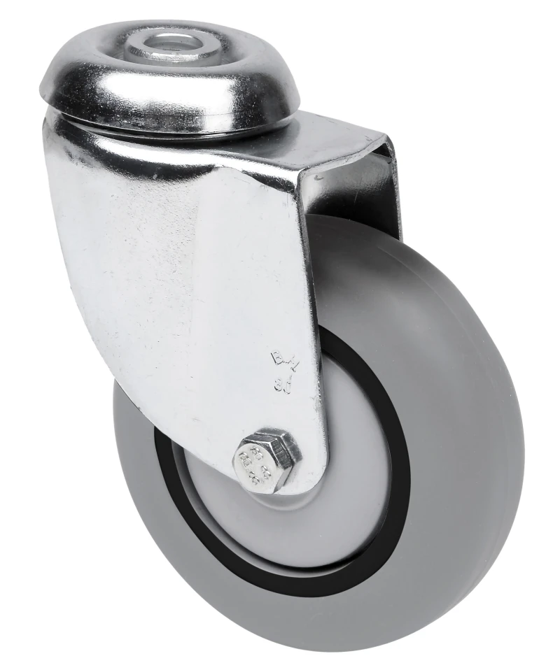 Räder aus grauem gespritztem Gummi, geeignet für Ladungen bis zu 80 kg.