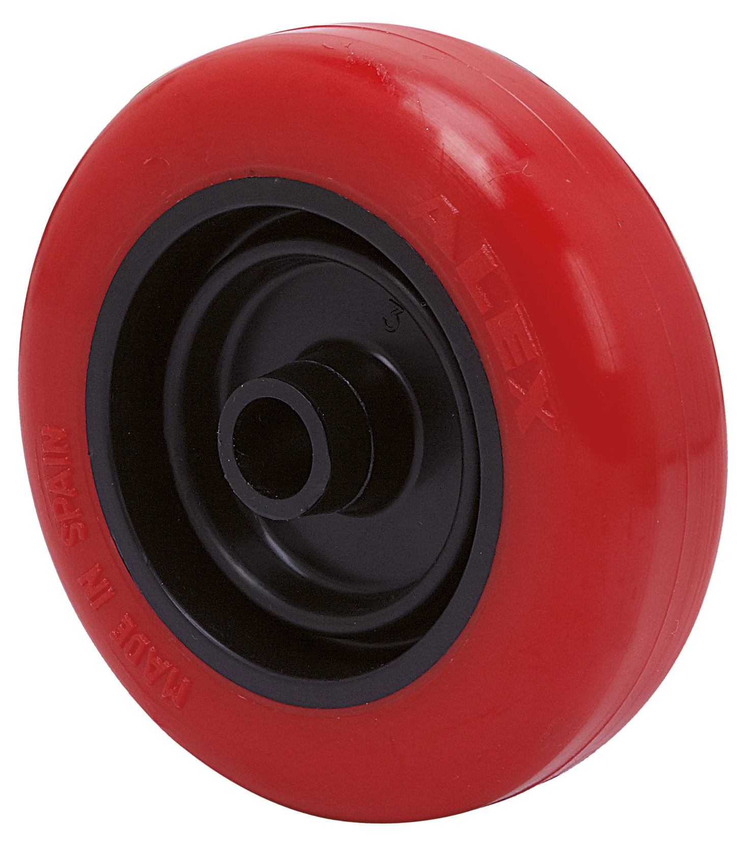 Räder aus rotem gespritztem Polyurthan. Geeignet für Ladungen bis zu 100 kg.