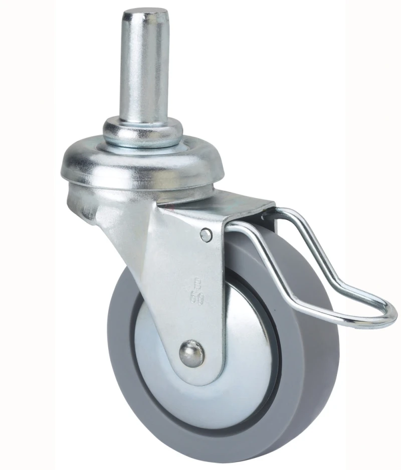 Hergestellt aus tiefgezogenem Stahlblech gepresst bis 2 mm. Verzinke Ausführung. Lenkrollen-Gehäuse mit zweifacher Kugellagerung im Drehkranz. Gummi-Räder Ø 50 und 60 mm mit Fadenschütze ausgestattet. Hergestellt gemäß Europanorm EN 12528.
