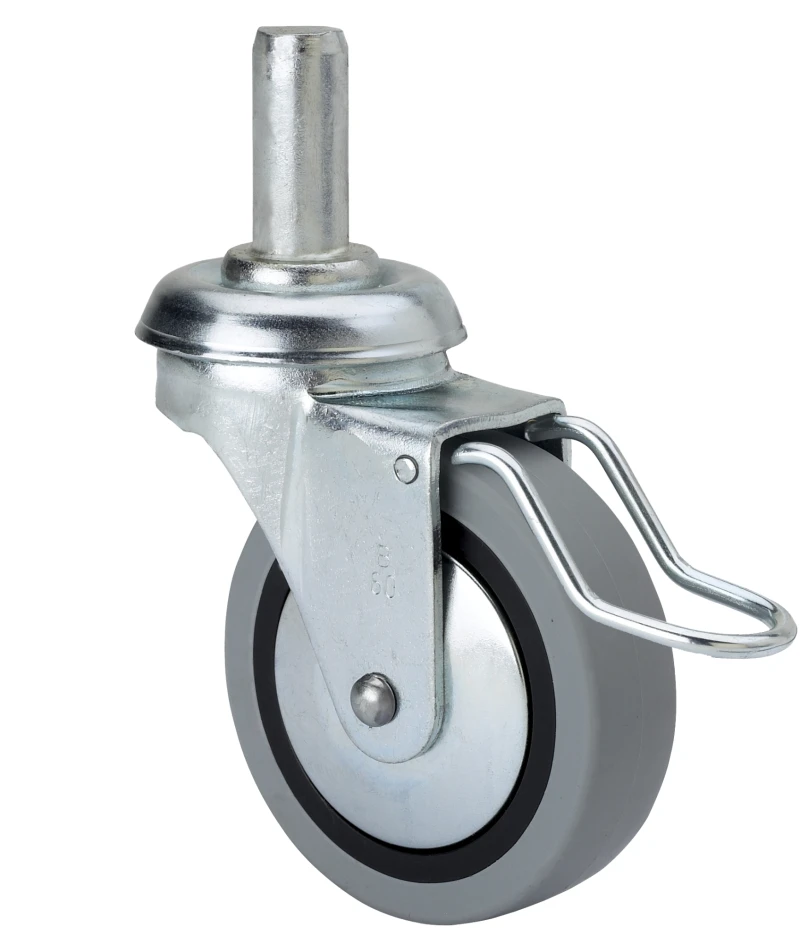 Hergestellt aus tiefgezogenem Stahlblech gepresst bis 2 mm. Verzinke Ausführung.Lenkrollen-Gehäuse mit zweifacher Kugellagerung im Drehkranz. Gummi-Räder Ø 50 und 60 mm mit Fadenschütze ausgestattet. Hergestellt gemäß Europanorm EN 12528.