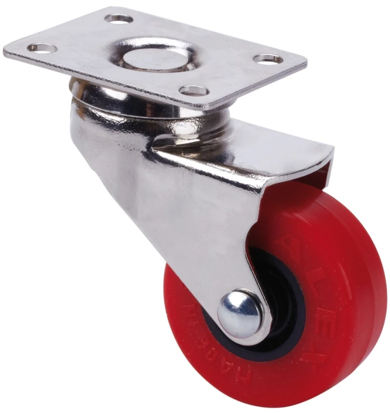 Räder aus gespritztem rotem Polyurethan, geeignet für Ladungen bis zu 40 kg.