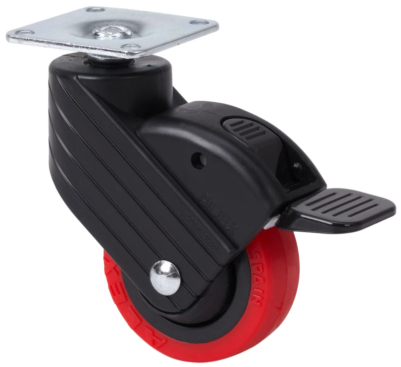 Räder aus gespritztem rotem Polyurethan, geeignet für Ladungen bis zu 30 kg.