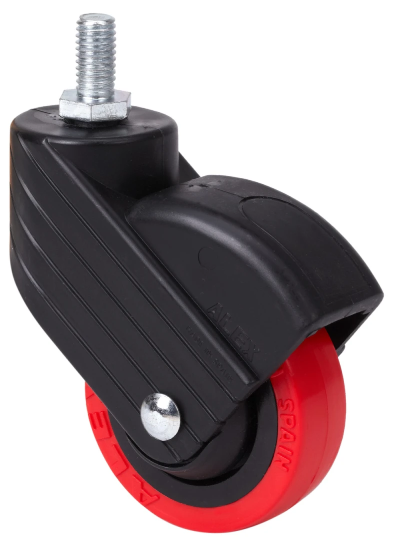 Räder aus gespritztem rotem Polyurethan, geeignet für Ladungen bis zu 30 kg.