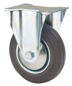 Räder mit Metallkern und Reifen aus schwarzem Gummi, geeignet für Ladungen bis zu 250 kg.