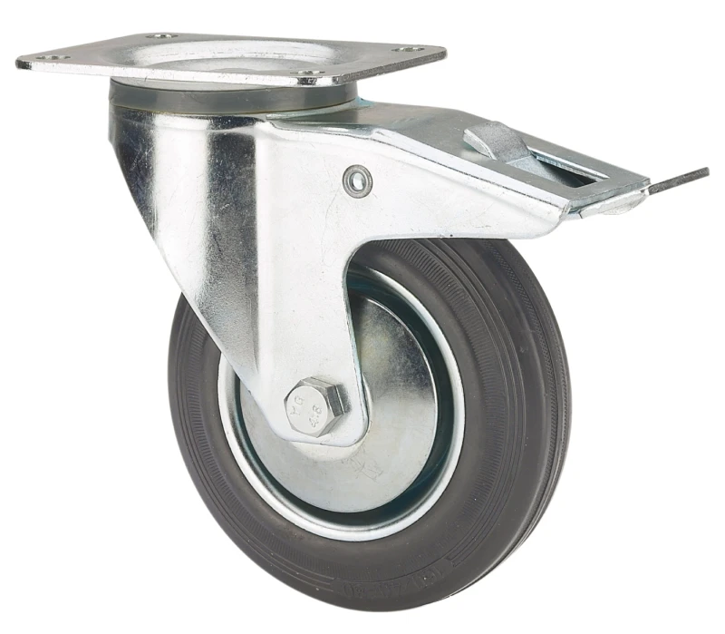 Räder mit Metallkern und Reifen aus schwarzem Gummi, geeignet für Ladungen bis zu 250 kg.