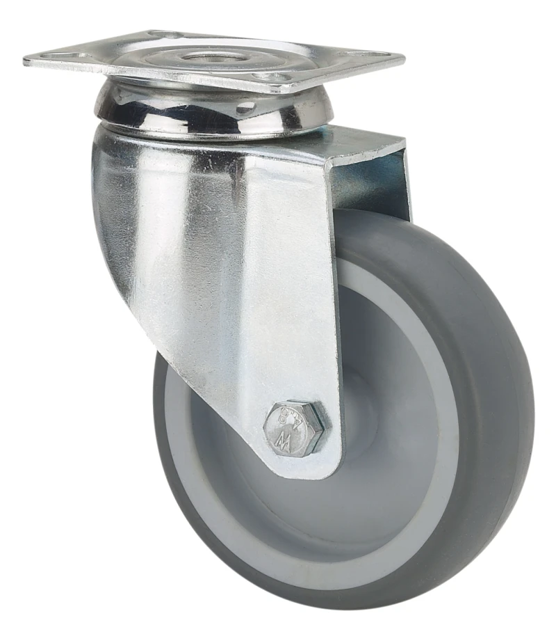 Räder aus grauem gespritztem Gummi, geeignet für Ladungen bis zu 130 kg.