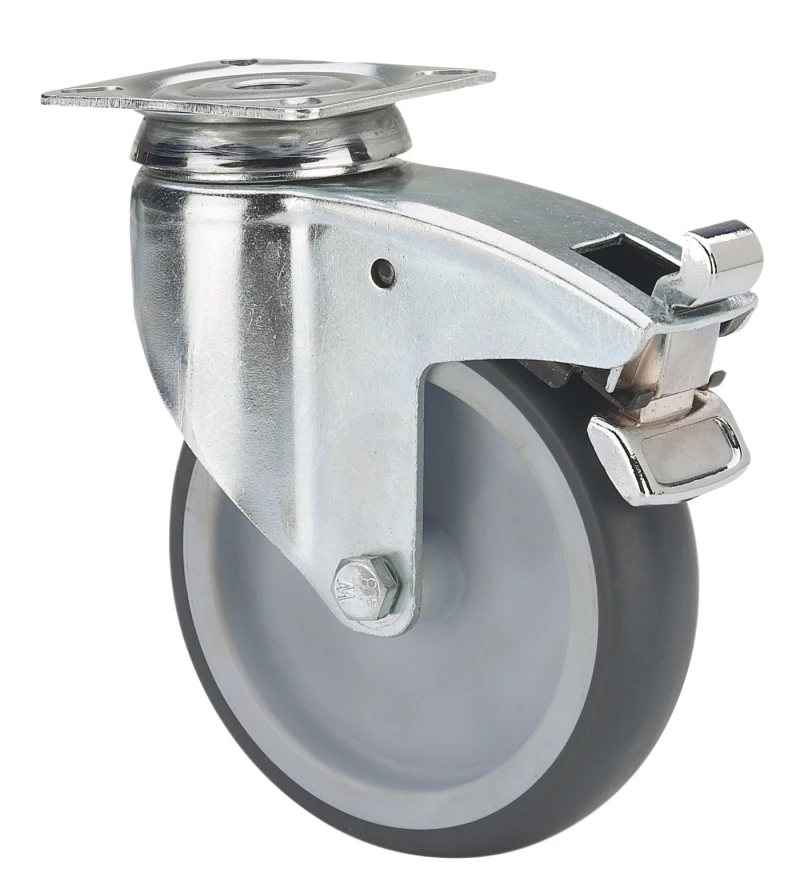 Räder aus grauem gespritztem Gummi, geeignet für Ladungen bis zu 130 kg.
