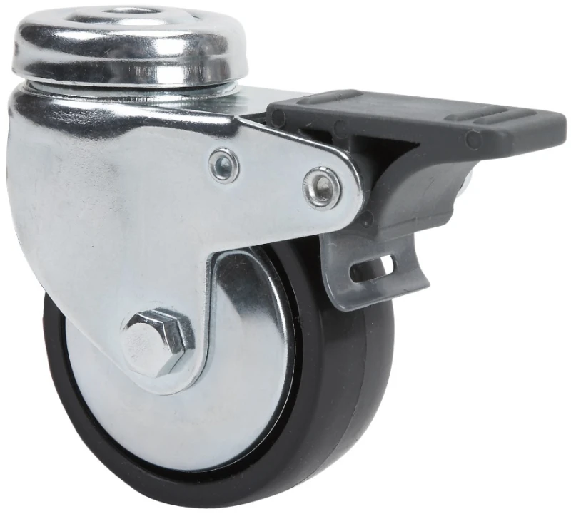 Tiefgezogenem Stahlblech.Ausführung: verzinkt, glänzend.Befestigung durch Rückenloch und Anschraubplatten.Zweifachem Kugelkranz.Radlagerung: Gleitlager.Fadenschutz.