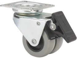 Doppelte Räder aus grauem Gummi, empfohlen für Ladungen bis zu 80 kg.
