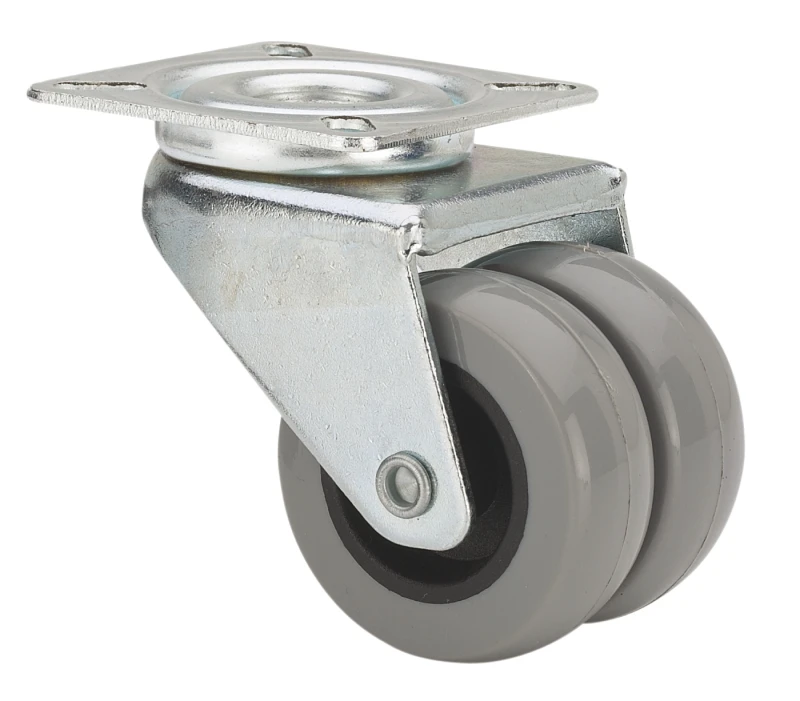 Doppelte Räder aus grauem Gummi, empfohlen für Ladungen bis zu 80 kg.