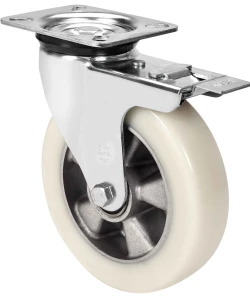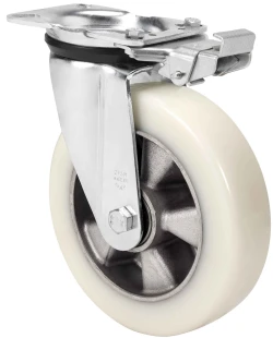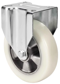 Rollen aus Aluminiumkern und Reifen aus geschmolzenem weissen Polyurethan mit einer Härte von 88º shore A, besonders geeignet für schwere Lasten bis zu 650 kg.