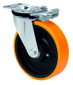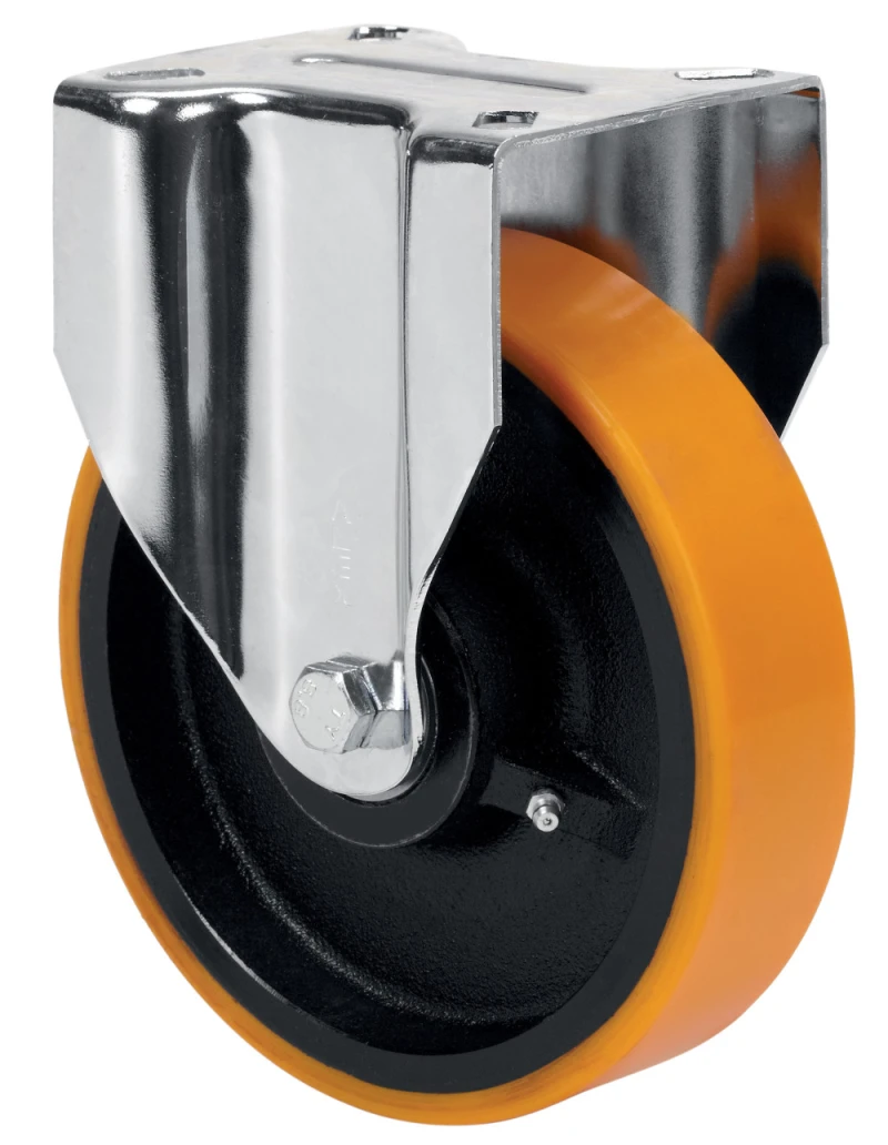 Räder mit Stahlkörper und Laufbelag aus geschmolzenem Polyurethan mit eine Härte von 95º shore A, besonders geeignet für schwere Lasten bis zu 700 kg.