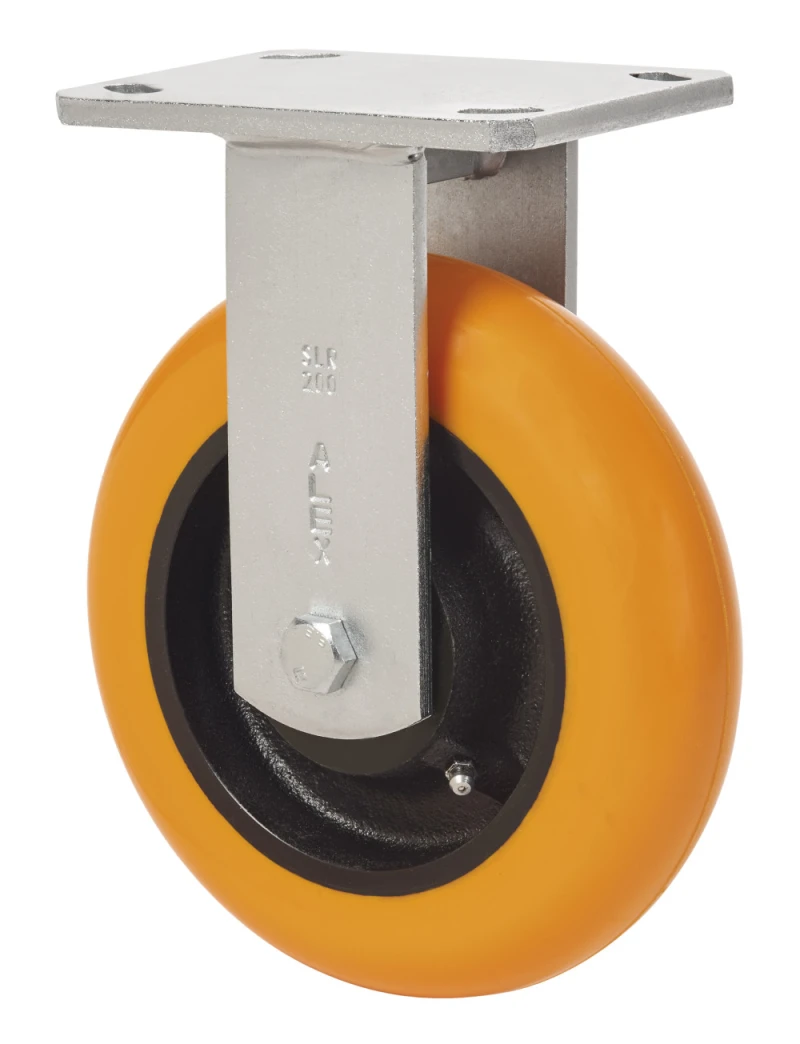Rollen mit Stahlkern und Reifen aus geschmolzenem Polyurethan mit einer Härte von 95º shore A, besonders geeignet für schwere Lasten bis zu 800 kg.