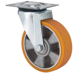 Räder mit Aluminiumkörper und Laufbelag aus geschmolzenem Polyurethan mit einer Härte von 95º shore A. Besonders geeignet für Lasten bis zu 700 kg.