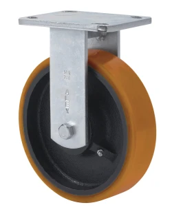 Räder mit Stahlkern und Reifen aus geschmolzenem Polyurethan mit einer Härte von 95º shore A. Geeignet für Ladungen bis zu 1000 kg.