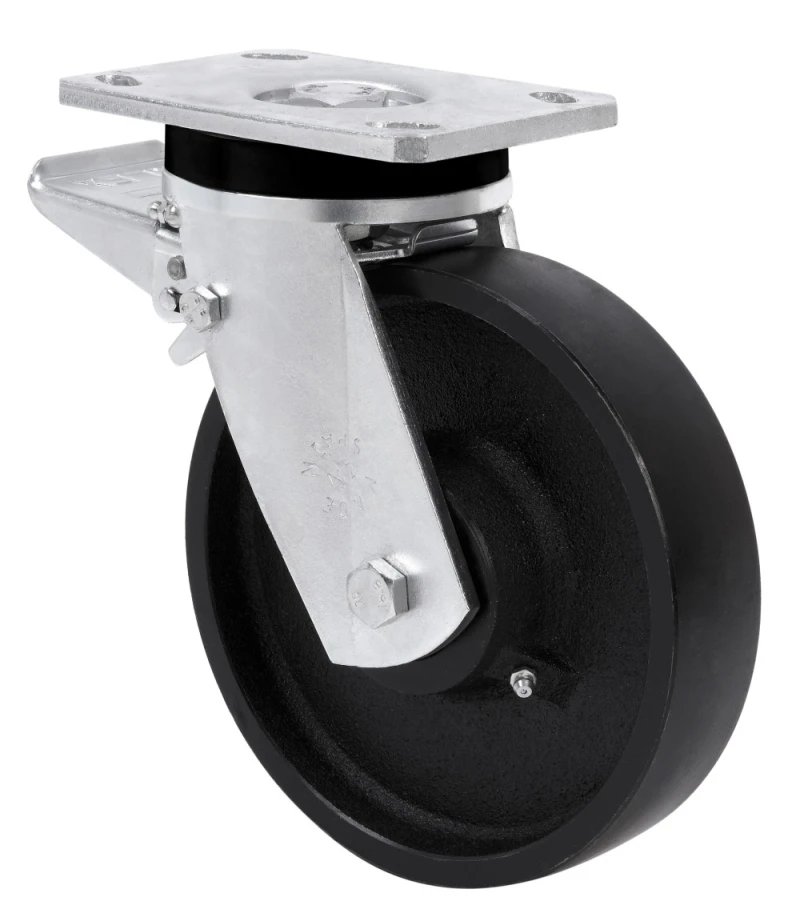 Stahlschweiβkonstruktion bis 8 mm. Lenkrollen Gehäuse mit Kugellagerung und Kegelrollenlager im Drehkranz. Entwickelt für den Einsatz in der Werkinstandhaltung, der Metallindustrie sowie an mechanisch gezogenen Wagen. Weiβ verzinkt Hergestellt nach der Europäischen Norm EN 12532