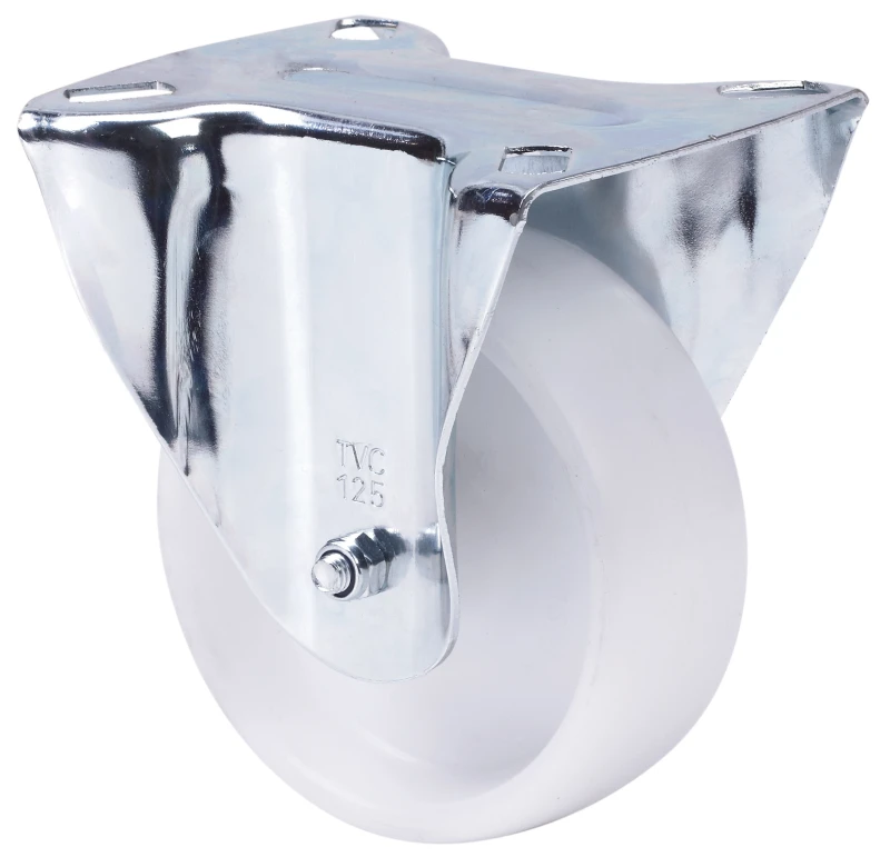 Räder aus weissem Polypropylen, geeignet für Ladungen bis zu 280 kg.