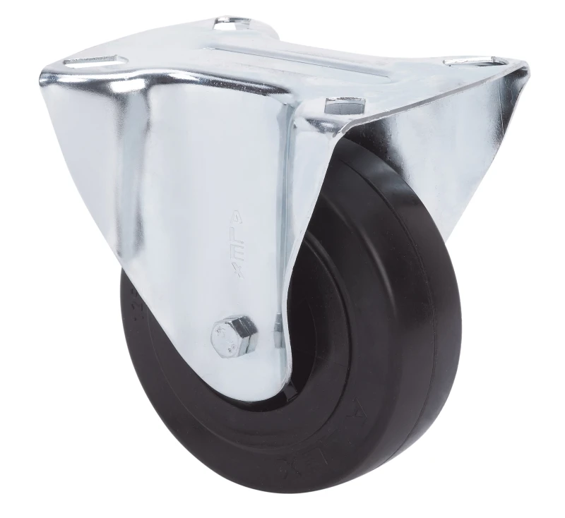 Räder mit schwarzem Nylonkern und Gummireifen. Geeignet für Ladungen bis zu 200 kg.