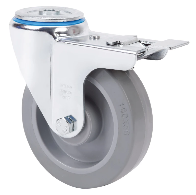Räder aus grauem elastischem Gummi. Geeignet für Ladungen bis zu 400 kg.