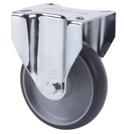 Räder auf gespritztem grauem Gummi mit Kern aus Polypropylen. Geeignet für Ladungen bis zu 180 kg.