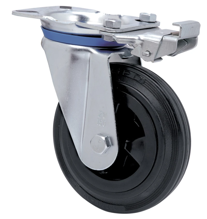 Räder aus natürlichem schwarzem Gummi, geeignet für Ladungen bis zu 215 kg.