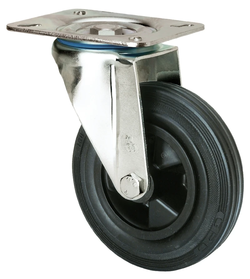 Räder aus natürlichem schwarzem Gummi, geeignet für Ladungen bis zu 215 kg.