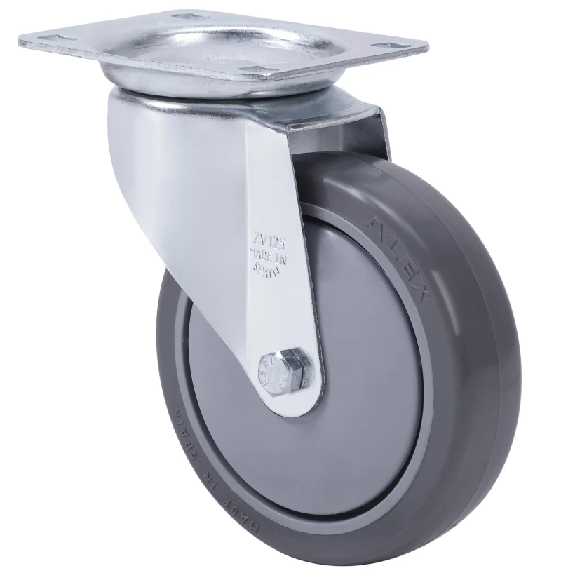 Räder mit Kern aus Polypropylen und Reifen aus grauem gespritztem Polyurethan, geeignet für Ladungen bis zu 200 kg.