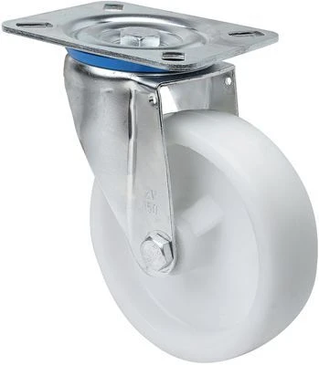 Räder aus weissem Polypropylen, geeignet für Ladungen bis zu 400 kg.