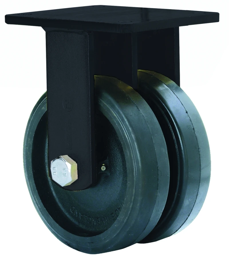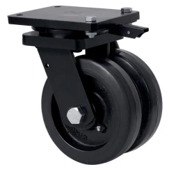 Doppelte Rollen mit Stahlkern und schwarzem Gummreifen. Sie werden für schweres Gewicht empfohlen und können bis zu 1.400 kg tragen.