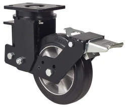 Rollen mit Aluminiumkern und Beleg aus schwarzem elastischem Gummi mit einer Härte von 70º shore A. Besonders geeignet für schwere Lasten bis zu 450 kg. Sehr gute Stossdämpfung. Ideal für unebene Böden. Anwendungsbereiche: Aussenbereiche, interne Logistik, mobile Tribünen, Transportkarren, Logistik von Missionsmaterial, Schwermaschinerie für die Bauindustrie, mobile Kräne. Besonders geeignet für die Luftfahrt-, Eisenbahn- und Automobilbranche.