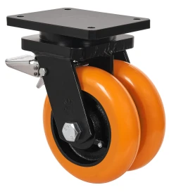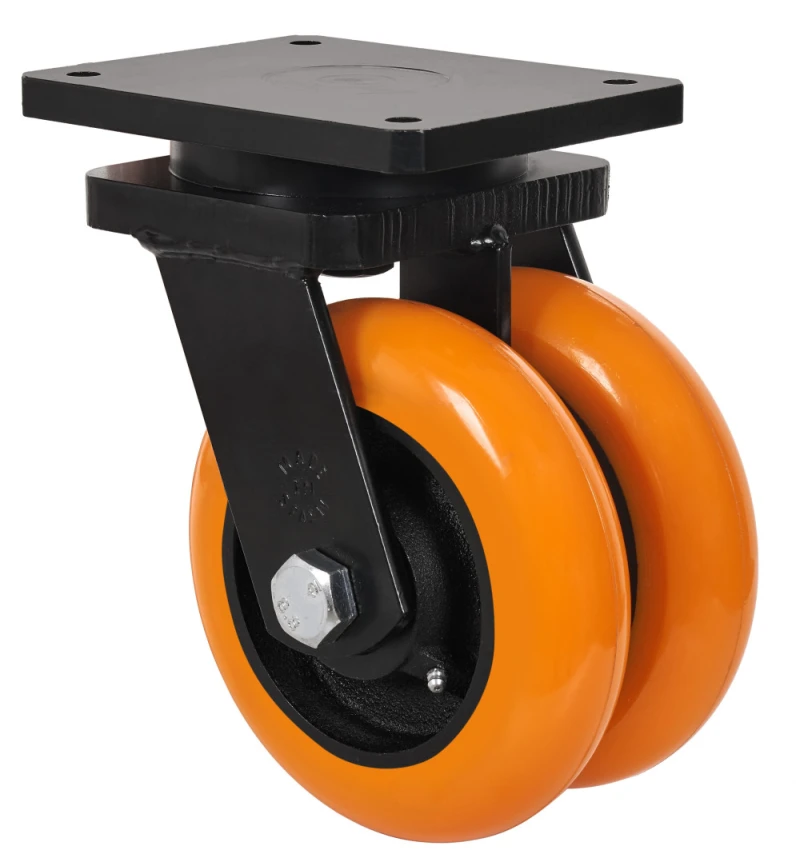 Doppelte Rollen mit Stahlkern und Reifen aus geschmolzenem Polyurethan 95º, besonders empfohlen für schwere Ladungen bis zu 1.600 kg.