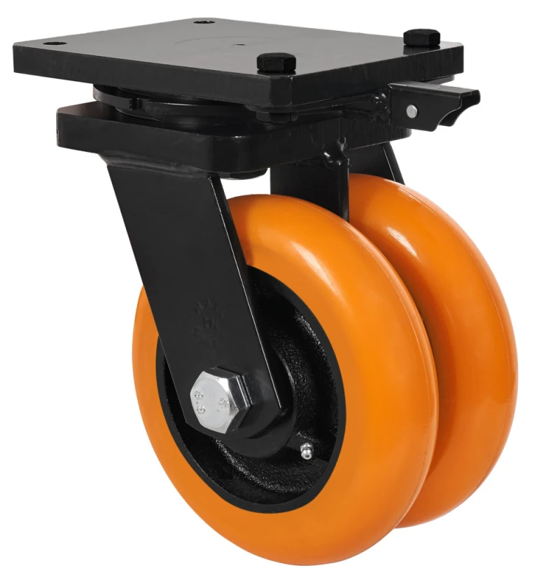 Doppelte Rollen mit Stahlkern und Reifen aus geschmolzenem Polyurethan 95º, besonders empfohlen für schwere Ladungen bis zu 1.600 kg.
