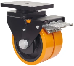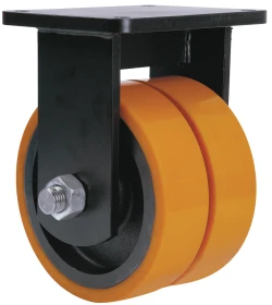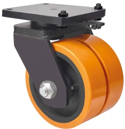 Doppelte Rollen mit Stahlkern und Reifen aus geschmolzenem Polyurethan mit einer Härte von 95º shore A. Besonders geeignet für schwere Ladungen bis 4.000 kg.