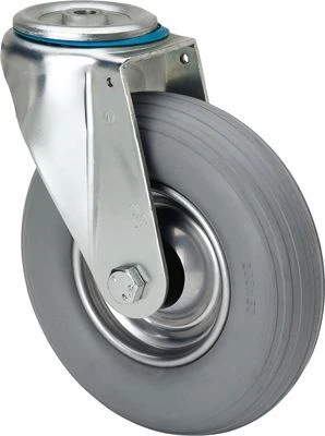 Undurchstechbare graue Rollen mit Metallfelge und elastischem Laufbelag, besonders geeignet für Ladungen bis zu 75 kg.