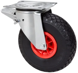 Schwarzfarbene, pneumatische Räder mit glattem Radlager (RIFN) oder Rollenradlager (RIFR), geeignet für Ladungen bis zu 100 kg.